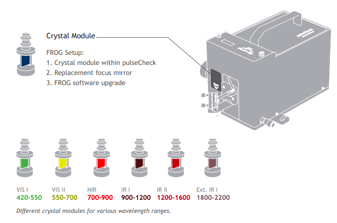 各種可互換晶體保證覆蓋波長(zhǎng)在420 nm到2200 nm之間。脈沖寬度從20 fs到6ps,光譜分辨率可達(dá)0.1nm。對(duì)于每個(gè)晶體,軟件包括校準(zhǔn)數(shù)據(jù),允許晶體調(diào)諧到特定波長(zhǎng)的相位匹配。頻率分辨光學(xué)門控選項(xiàng)是為激光重復(fù)率高于10 kHz設(shè)計(jì)的,可用于pulseCheck自相關(guān)器系列。