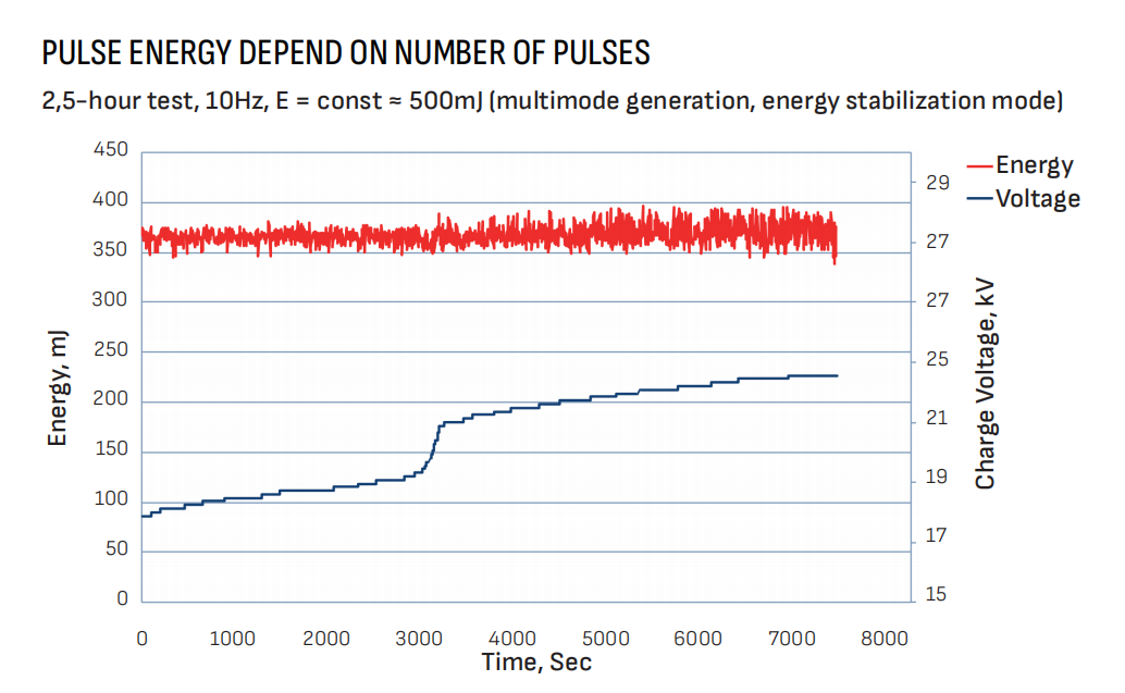 2,5 小時測試,10Hz,E = const ≈ 500mJ(多模生成,能量穩(wěn)定模式)