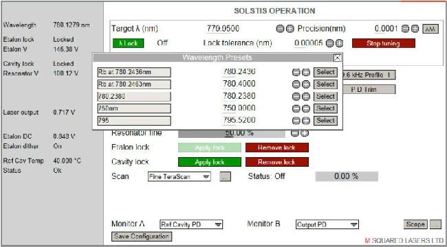 TeraScan包含一個(gè)自動(dòng)波長(zhǎng)調(diào)諧和鎖定的功能。SolsTIS將迅速調(diào)到調(diào)諧范圍內(nèi)的任何波長(zhǎng)。當(dāng)目標(biāo)波長(zhǎng)被達(dá)到,SolsTIS可以鎖定波長(zhǎng)計(jì)。絕對(duì)精度和漂移/穩(wěn)定由波長(zhǎng)計(jì)來(lái)確定。