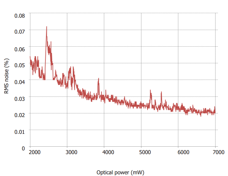 顯示低噪聲的典型 opus 532 噪聲功率曲線在可用功率范圍內(nèi)的性能
