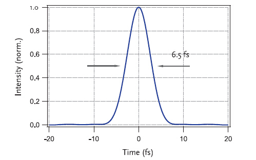 Venteon one 激光系統(tǒng)設(shè)計(jì)緊湊、外形堅(jiān)固、容易安裝,其外形尺寸只有630 x 250 x 97 mm,包含抗振激光頭、集成泵源和通過(guò)兩個(gè)可拆卸電纜連接的多功能控制器,系統(tǒng)可提供幾個(gè)周期超短脈沖,非常寬光譜帶寬200nm (如圖一),小于8fs的脈寬,一般在6.5fs 左右(如圖二)。 是顯微鏡、光譜學(xué)和泵浦探測(cè)實(shí)驗(yàn)等應(yīng)用的理想選擇,其需要信賴(lài)、簡(jiǎn)單、成套的激光解決方案得到超短脈沖和穩(wěn)定的輸出功率。