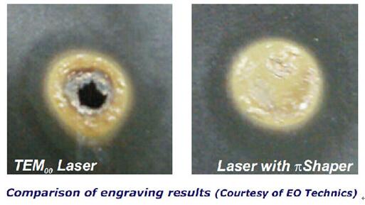 利用這些獨(dú)特的工具,可以將類似高斯的單?;蚨嗄<す夤馐D(zhuǎn)換為光強(qiáng)分布為準(zhǔn)直平頂?shù)墓馐?,且具有接?00%的轉(zhuǎn)換效率。πshaper產(chǎn)生的準(zhǔn)直平頂光束具有一個(gè)大的工作距離。這使得能夠用常規(guī)成像光學(xué)元件對(duì)光束進(jìn)行操作和改變光束光斑大小。幾乎相同的有效尺寸的輸入和輸出光束讓它易于集成在應(yīng)用程序中。最初設(shè)計(jì)為消色差光學(xué)系統(tǒng)的πshaper可以與各種激光器同時(shí)工作。開發(fā)了基于二氧化碳(CO2)激光器的應(yīng)用,這種光束整形系統(tǒng)開辟了新的機(jī)會(huì)來改善材料的加工技術(shù)。