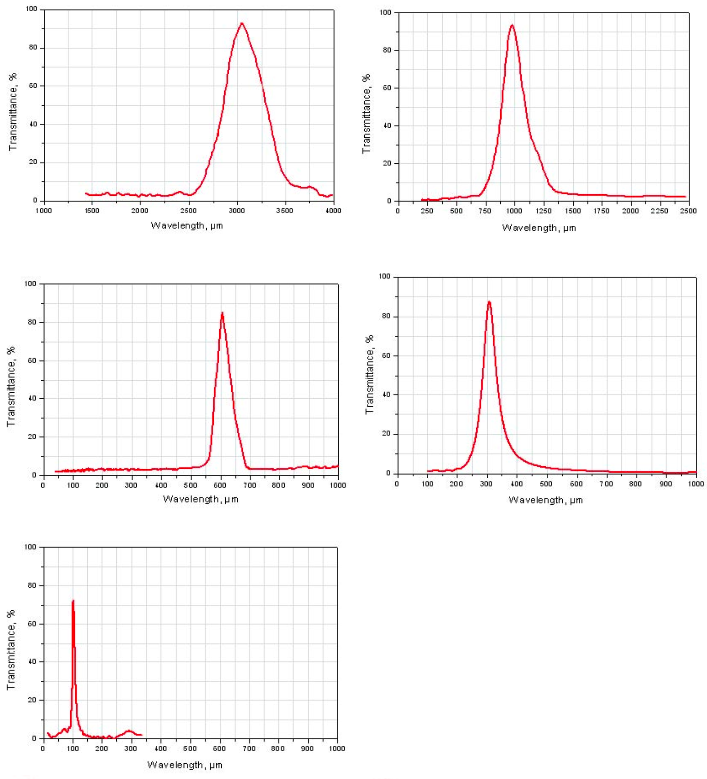 THZ帶通濾波片可以使20到3000μm之間波長范圍的電磁波通過。這些濾波片其實(shí)是帶小孔的金屬薄膜,孔的結(jié)構(gòu)取決于波長范圍。這種濾波片解決了接近光波波段的THZ波的傳輸問題。這樣也可以在大的通光口徑下獲得更高純度的THZ波。建議使用帶通濾波片獲得高光譜分辨率以及小的外觀尺寸和重量。