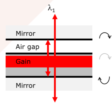 帶有襯底鏡、增益區(qū)、氣隙和頂鏡的MEMS-VCSEL示意圖